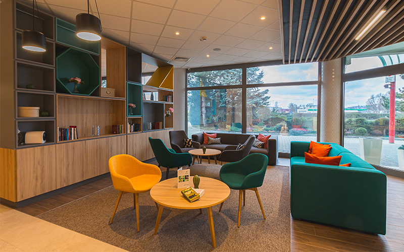 Az autópályáról letérve, a szállodát körülölelő nagy, ápolt kert és a tágas parkoló a nyugalom szigetét varázsolják elénk a budaörsi agglomeráció, a bevásárló központok és irodaházak nyüzsgő világában. A szálloda lobbyjába lépve modern, kellemes, megnyugtató enteriőr, magasan képzett, udvarias személyzet fogadja vendégeinket.